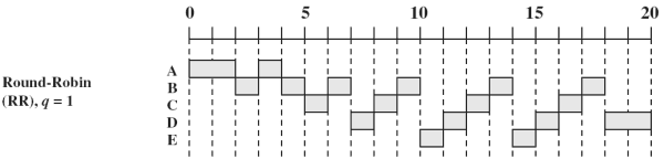 This should produce the sequence shown in Stallings Figure 9.5 (RR q=1):
